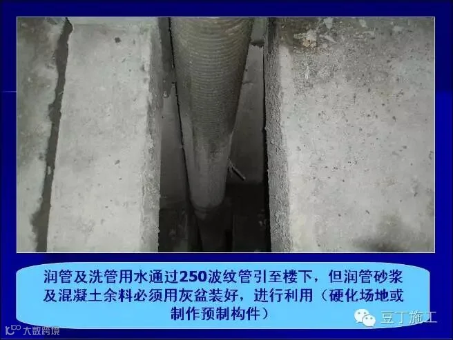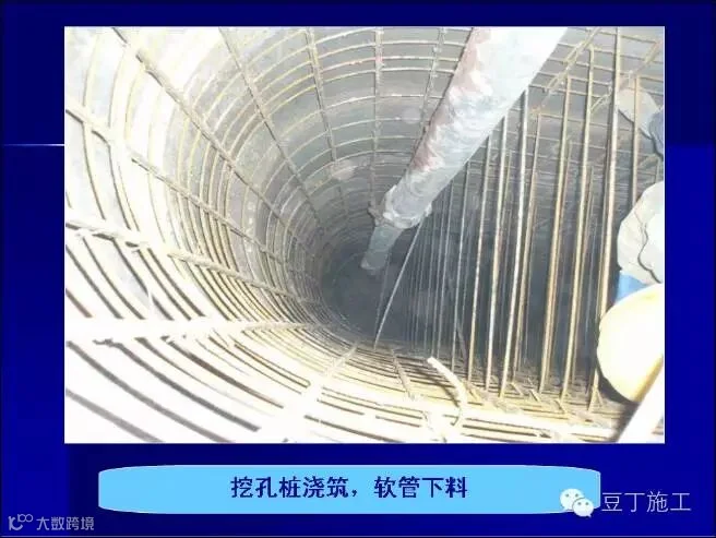 浇筑基础时积水必须抽干,并采用软管下料,软管端部距混凝土面不得超过2m。