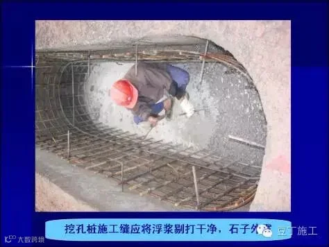 (2)要求全断面进行錾麻,将浮桨剔打干净,特别是孔桩施工缝,必须剔打至石子外露;