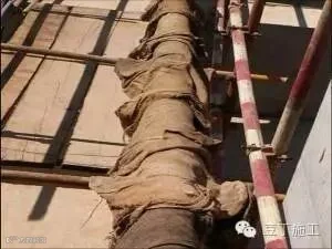 夏季混凝施工时,为更好控制混凝土入管温度,泵管采用麻袋覆盖。