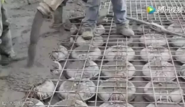 一起围观一下这是什么情况,在混凝土板的上下板块之间夹合成塑料球,来代替混凝土,你们见过吗,莫非是偷工减料?