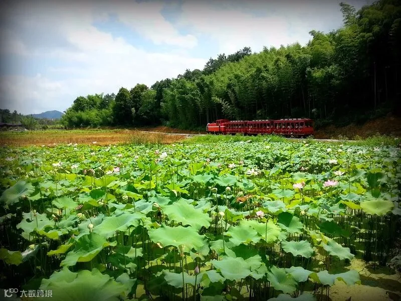 “呜呜呜”——伴着清脆的汽笛声,“阿鲁阿家”号观光小火车满载着游客缓缓开动。窄窄的铁轨伸向远方,深深浅浅的绿,在阳光下更加诗意和耀眼。小火车从中穿行而过,串起了绿意浓浓的灵芝农场、竹园农场、桃花农场、蔬菜农场、石斛农场……