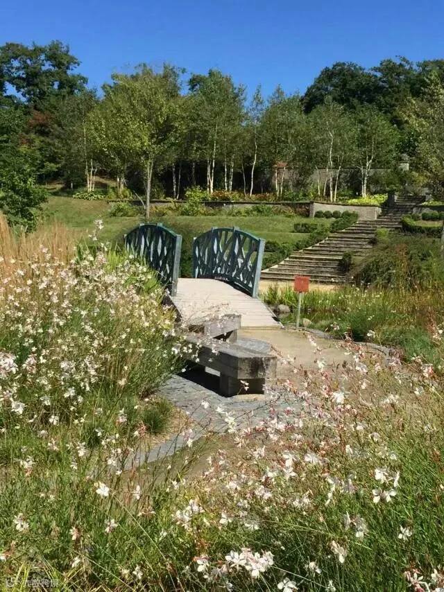 拱桥的另一边,高挑纤细的山桃草的白色小花随风摇曳,秋意渐浓。