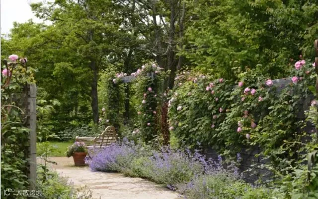 赛艇花园,顾名思义,就是以赛艇为主题的花园。这个以白色为基调的小小花园,简洁明快,细长的废旧舟艇中种上了睡莲,而桨则成了墙壁上的装饰物。低矮的白色墙壁上攀爬着的铁线莲与桨交缠在一起,仿佛在跳一曲难舍难分的华尔兹。将赛艇与植物进行融合得如此自然和谐,这样的设计巧思令人不得不赞叹!