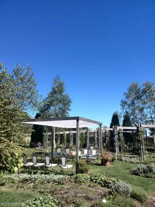 坐在被玫瑰簇拥着的铁艺秋千上轻轻摇着,阳光从玫瑰枝条的间隙中洒落在身上,再抬头看看北海道蔚蓝的天空,银河庭园仿佛有一种令人忘却时间的魔力,而这种魔力,我想只有身临其境才能感受得到。