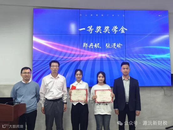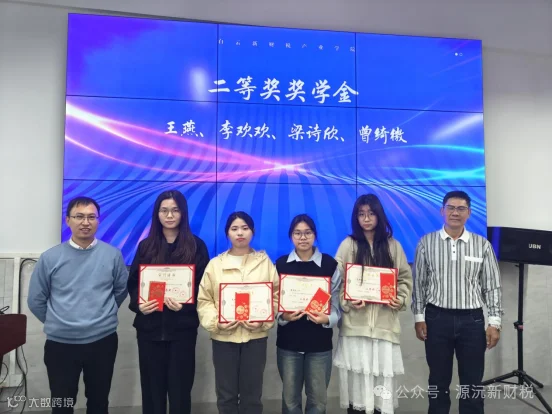 -佟伯承副院长、 肖书平副院长、源沅财管黄燕飞总监与获奖学生合影-