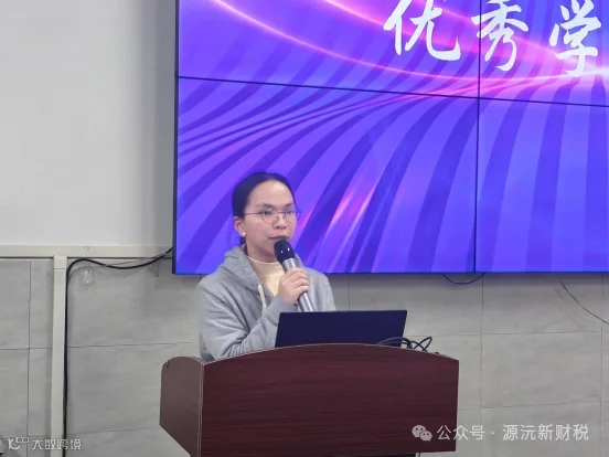 在表彰大会上,三位杰出的获奖代表郑丹妮、张漫瑜、何玉芳分别发表了获奖感言。学生代表郑丹妮表达了对新财税产业学院的由衷感谢。她认为,学院提供的学习平台和导师们的谆谆教诲是她成长和进步的重要源泉。获得奖学金不仅是对她过去努力的肯定,更是激励她未来继续前行的动力。她欢迎新学员的加入,并寄语他们在这里能够打下坚实的职业基础,为未来的职业生涯做好充分准备。
