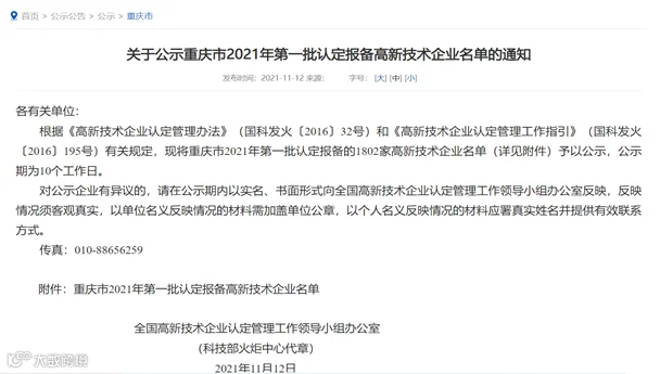 日前,经国家火炬中心公示,重庆汇利兴顺利通过2021年国家级高新技术企业认定。