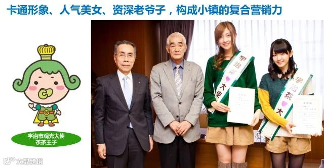 总之,卡通形象代表活泼气氛,美女做魅力代言,老爷子做精神象征。宇治打造茶小镇,其实很像咱们的朋友圈:你的朋友圈要热首先需要一个大师坐镇,他不需要发很多东西,但要有精神高度。其次要有一个女神,大家都想和她聊天。第三要有一个卡通形象,就是发很多帖子的人。如果你的朋友圈有这三类人,再加上有个土豪发红包,就极其完美了。这个逻辑和做小镇是非常像的。