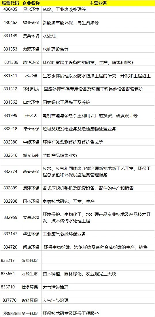 【附】全名单(环保企业已标红,如有遗漏欢迎补充)