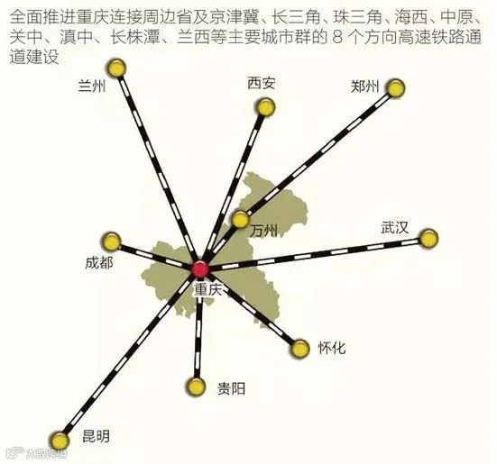 渝西高铁(万州至城口段、重庆东站至万州端),全长约660公里,重庆境内约410公里,速度目标值350公里/小时;