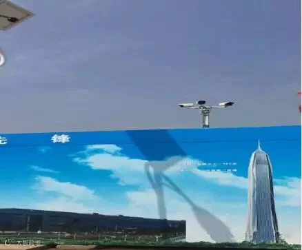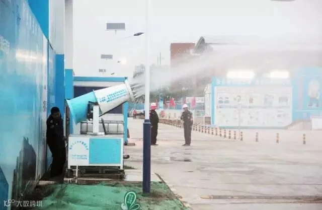 建设中第1个应用了除霾神器——将雾炮机和PM2.5自动监测仪联动起来。当监测仪监测到空气中PM2.5浓度高于每立方米75微克时,雾炮机就会自动喷出水雾,最远射程达30多米,直接节省了人力。