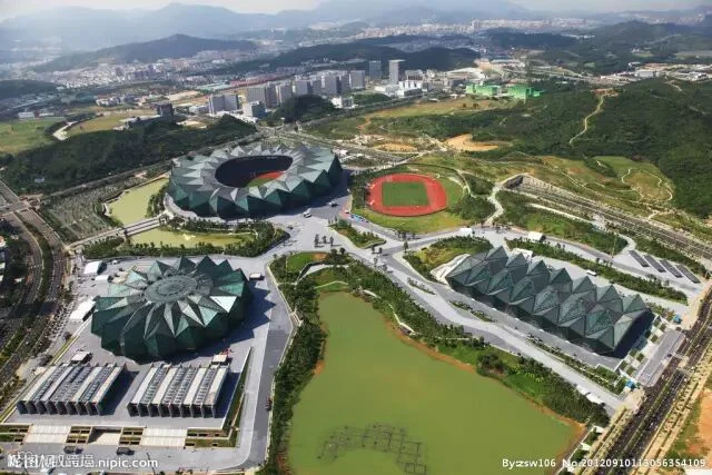大运中心含“一场两馆”,即体育场、体育馆和游泳馆,总投资约41 亿元,位于深圳龙岗中心城西区。大运中心工程量巨大,南北长约1050 米,东西宽约990 米,总用地面积52.05 万平方米, 总建筑面积29 万平方米,场平面积相当于132 个标准足球场。其中,体育场总体高度53 米,地上建筑五层,地下一层,于2010 年底完工,成为深圳地标性建筑。