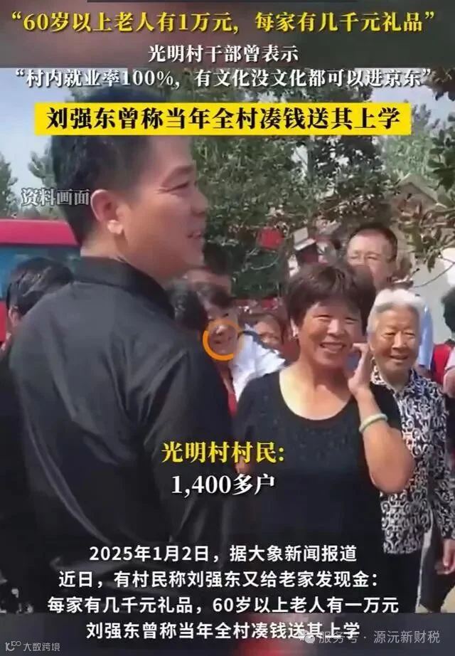 现场的报道显示,刘强东的小学老师和光明村60岁以上的老人,当天都收到了红包。