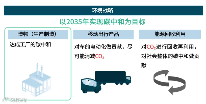 在环境领域,电装以“2035年实现碳中和”为目标,从“造物”、 “移动出行产品”和“能源利用”等3个领域开展工作,通过减少生产过程中的碳排放、利用可持续的生产技术和设备,提高能源利用效率等方式促进实现。