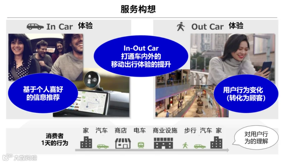 测试内容:根据这些数据分析用户特性、掌握个人喜好,结合推测的行驶情况来推送人们可能感兴趣的店铺信息。(注1)