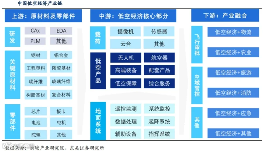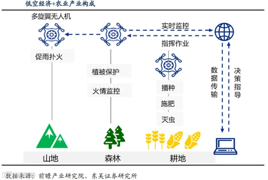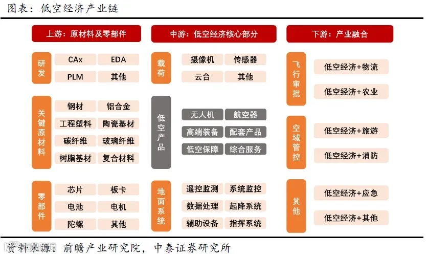 低空经济产业链庞大,关联近20行业、300余应用场景,市场前景广阔。当下,规模增长势头迅猛,据赛迪顾问预测,2023年低空经济规模超5000亿,2026年有望破万亿,且拉动上下游投资、带动跨界融合经济增长规模均超万亿。应用场景更是多点开花,无人机物流提速城市配送、低空旅游创新出游体验、空中交通管理保障飞行安全高效,全方位拓宽低空经济成长边界。