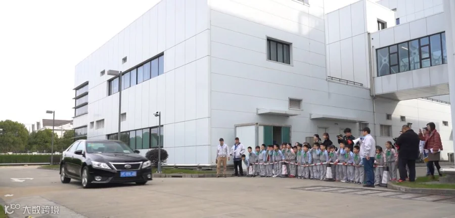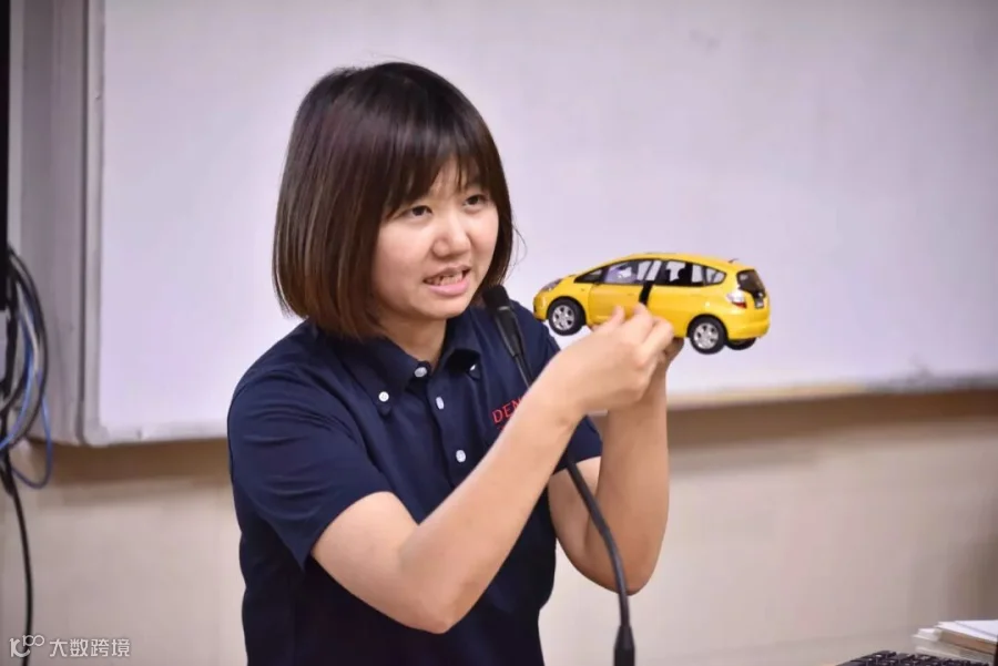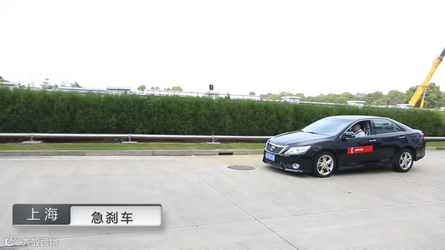 在电装上海技术中心内,工作人员准备了一辆测试用车,分别在低速和高速行驶下急踩刹车,让学生们通过卷尺的测量,来了解真实的刹车距离。