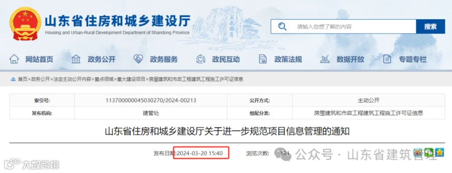 3月20日,山东省住建厅发布《关于进一步规范项目信息管理的通知》。