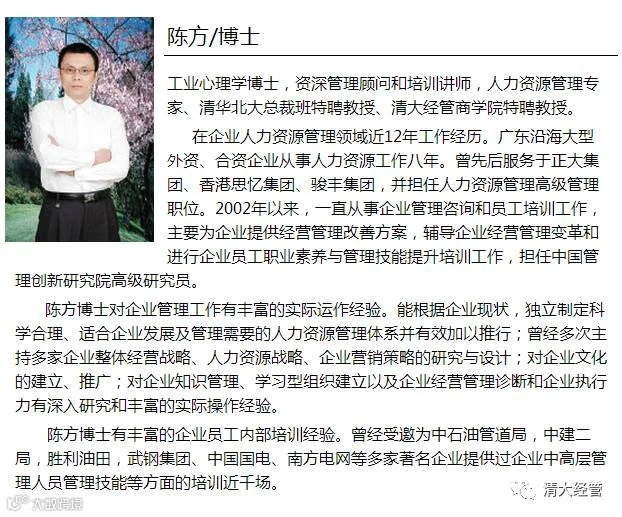 综合分析以上种种现象,陈方博士认为很多管理者在制度规范、技能培训、精神激励、物质奖励、职务升迁、加薪处罚等企业管理方面虽然是用尽心思,但是事实却总是事倍功半。问题在于:企业平时对于员工管理绝大多数都只关心只解决员工的知识技能层面存在的问题,停留在如何控制员工的层面,得到的结果自然也是只能暂时提高工作绩效,稍微过一段时间,就又一切照旧。真正的原因是管理者没有也无法解决员工的人生观、价值观、职业心态等本质的内在的问题,无法真正做到让员工自动自发。而这些问题就是员工的观念和职业心态问题,它恰恰是最关键的。不全面提升员工的职业化素养,不全面提升管理者的职业化素养,企业即使花再多的钱,费尽心思去培养员工的知识技能,可能也无法让企业的绩效有根本性的转变,无法让企业得到持续性的发展。