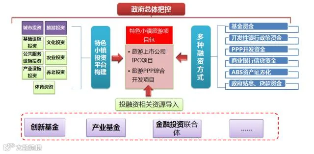 以整合特色小镇下的投融资平台为基础,构建与培育区域旅游上市公司和新三板企业为核心 ,PPP 项目为抓手 ,创新旅游IP导入为驱动,形成创新的旅游投融资模式,推进特色小镇创新发展。