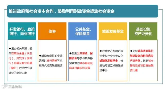 特色小镇PPP模式,是以特色小镇项目为合作载体,让实力较强的企业参与到项目建设中,从而实现政府建设特色小镇的目的,与此同时为社会资本带来一定的投资回报率。政府对于特色小镇PPP项目提供金融支持时还出台了相应的金融政策。