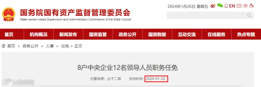 刚刚,国资委发布《8户中央企业12名领导人员职务任免》。其中:
