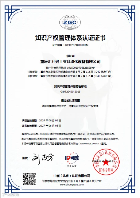 近日,公司又一项知识产权通过国家知识产权管理体系认证,标志着公司的知识产权管理工作迈上了规范化、标准化、科学化的新台阶,筑牢了企业硬核创新和高质量发展体系的基础,进一步提升了公司的核心竞争力。公司自创始以来,持续加大技术创新的研发与投入,现目前汇利兴西南工厂,申请专利39项,著作权413项;其中总部-汇兴智造,申请专利200余项,其中获得发明专利16项,开发软件著作权25项、商标注册48项,参与了6项国家标准制定,完成80多项专利技术成果转化.