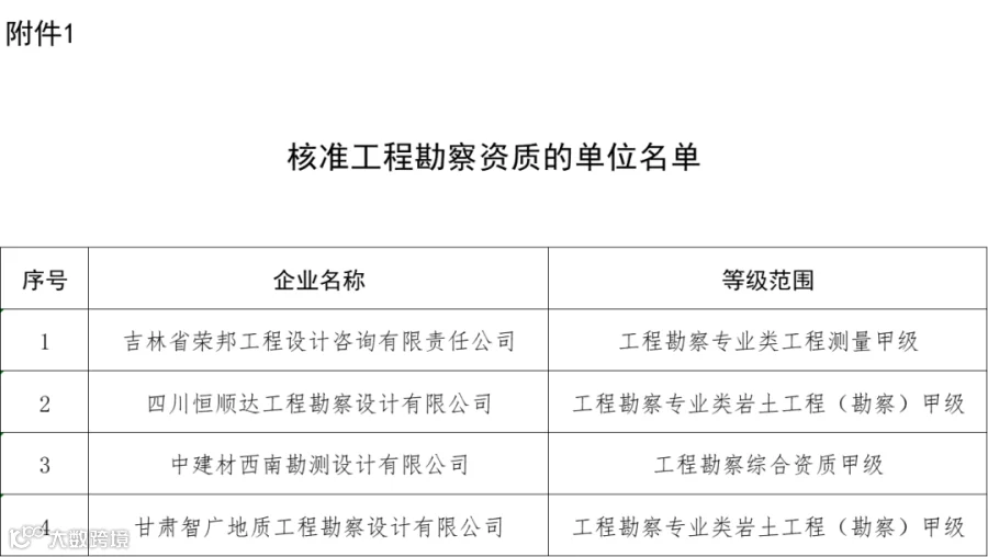 1.核准工程勘察资质的单位名单