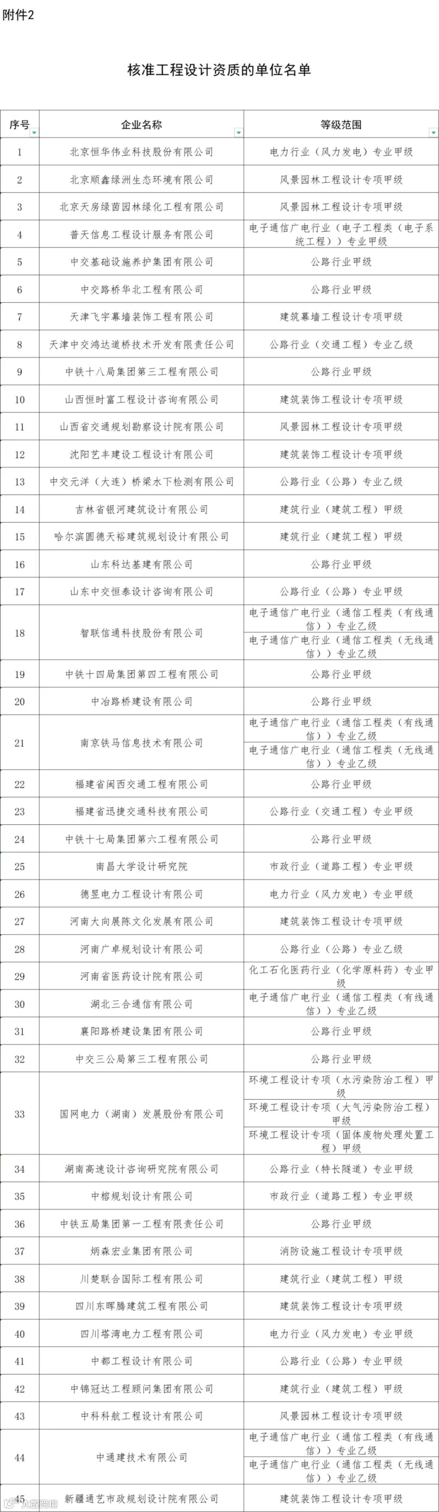 2.核准工程设计资质的单位名单