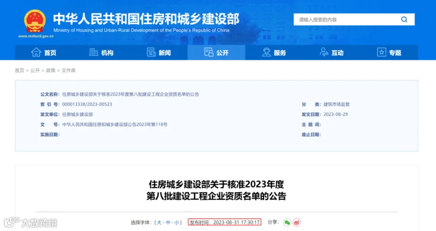 2月28日,住建部官网发布《关于核准2023年度第二批建设工程企业资质名单的公告》。