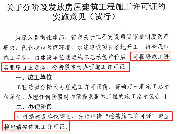 此前,多省住建厅明确:可分阶段办理施工许可。