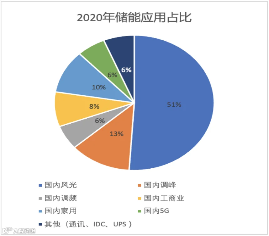 2020年储能市场的总规模为152.8GWh,市场规模约为2300亿元。储能的应用领域,51%都是用在风能和光伏的配套,风、光的高增长前景,将给储能市场非常可观的助力。