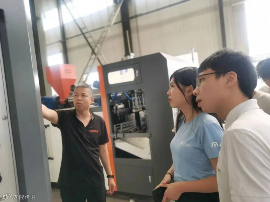 考察团队对我司大六模高速旋转吹塑机有着浓厚兴趣