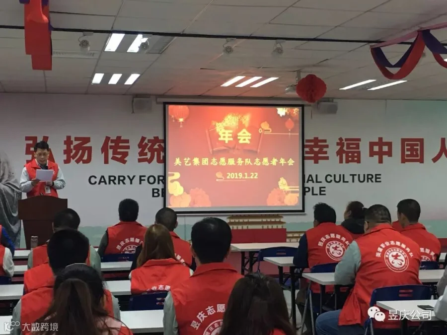 新春贺岁,金猪送福。2019年1月22日下午,筹备已久的“2018年美艺集团志愿服务队志愿者年会”在美艺文化室如期举行。参加此次年会的工作人员有:志愿队团支书 、团长、副团长、秘书长、各组长,以及志愿者们,约100人。