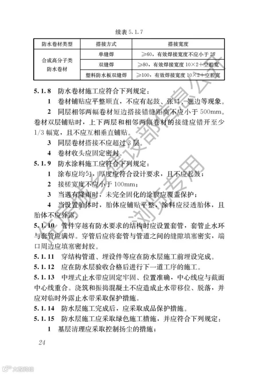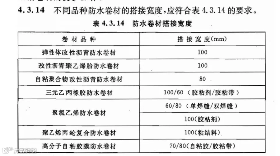 GB50108-2008 《地下工程防水技术规范》中的搭接宽度规定