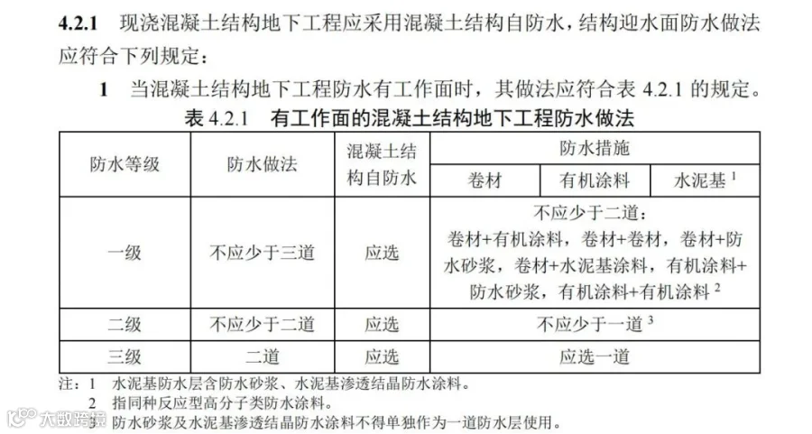 然后部分热爱防水的人士就在沉默中爆发了。抚卷观看正式版本的4.2.1条,已经连夜删除了“防水砂浆及水泥渗透结晶型防水涂料不得单独作为一道防水层使用”这句话。砂浆老兄渗透结晶老兄都松了一口气了。