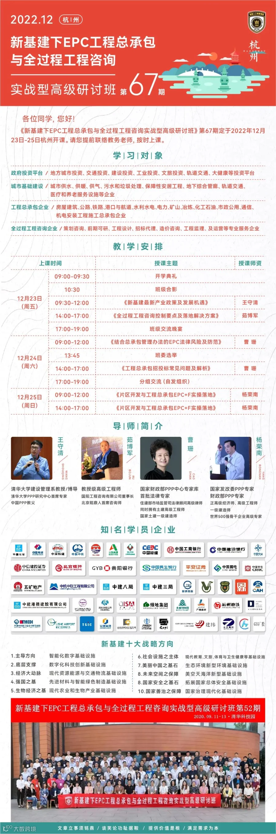 欢迎加入:新基建下EPC工程总承包与全过程工程咨询—实战型高级研讨班