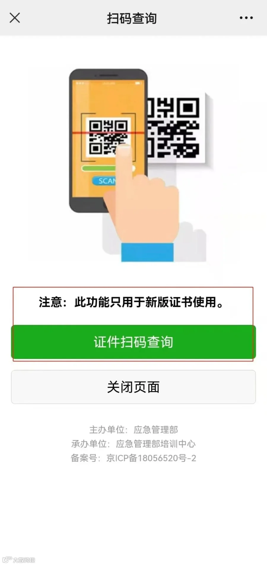 5、选择“证书查询”,新版二维码证件选择“扫码查询”,旧版证件选择“输入查询”;