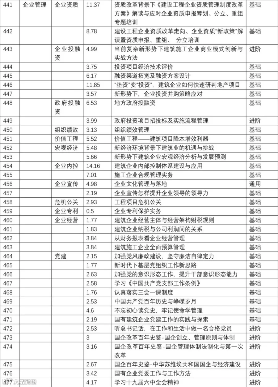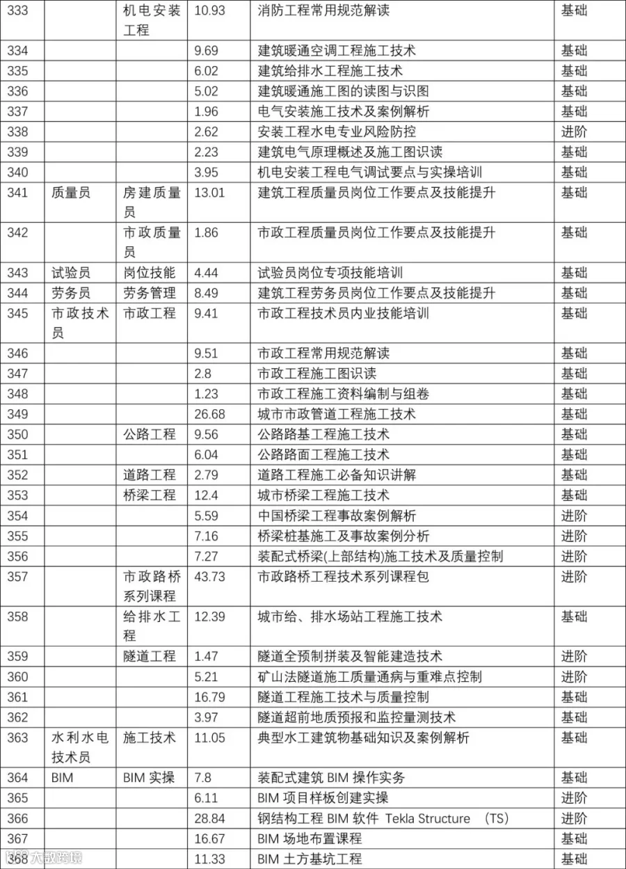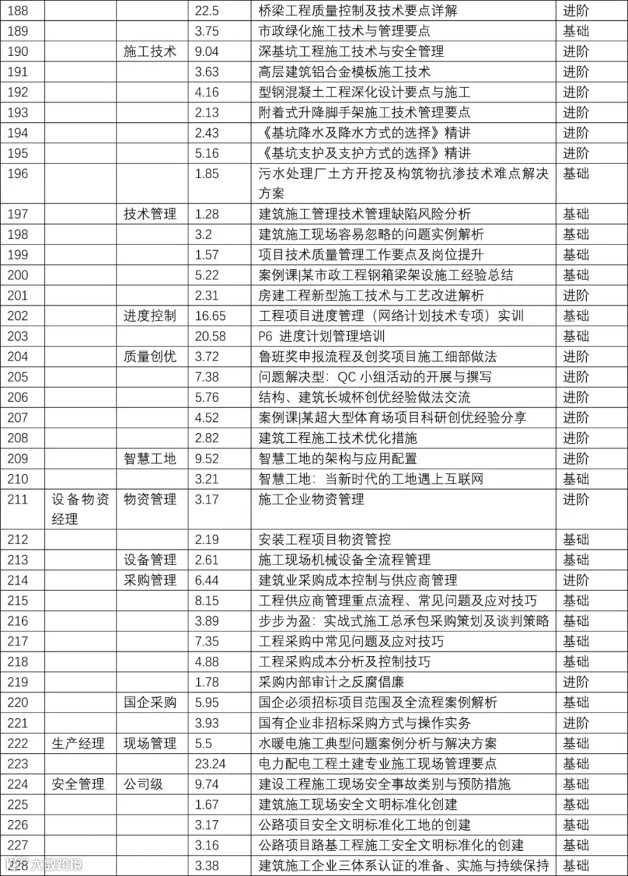 2022年 | 最新建设行业网络视频 课程主题 目录表