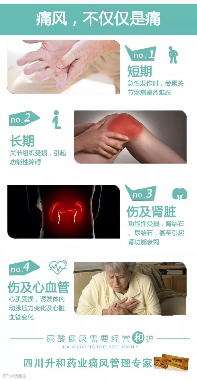 还有,升和痛风管是互联网+痛风患者管理。也就是您可以在网上时时监测到自己的双酸【高尿酸+尿尿酸】,及时了解自己的患痛风的概率。
