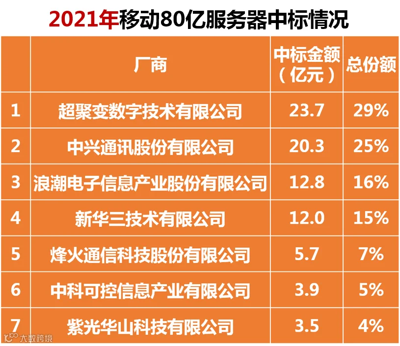 由于大家都知道的原因,2021年华为彻底退出了PC服务器市场,行业进入群雄逐鹿的局面,2021年中移动采购情况如下: