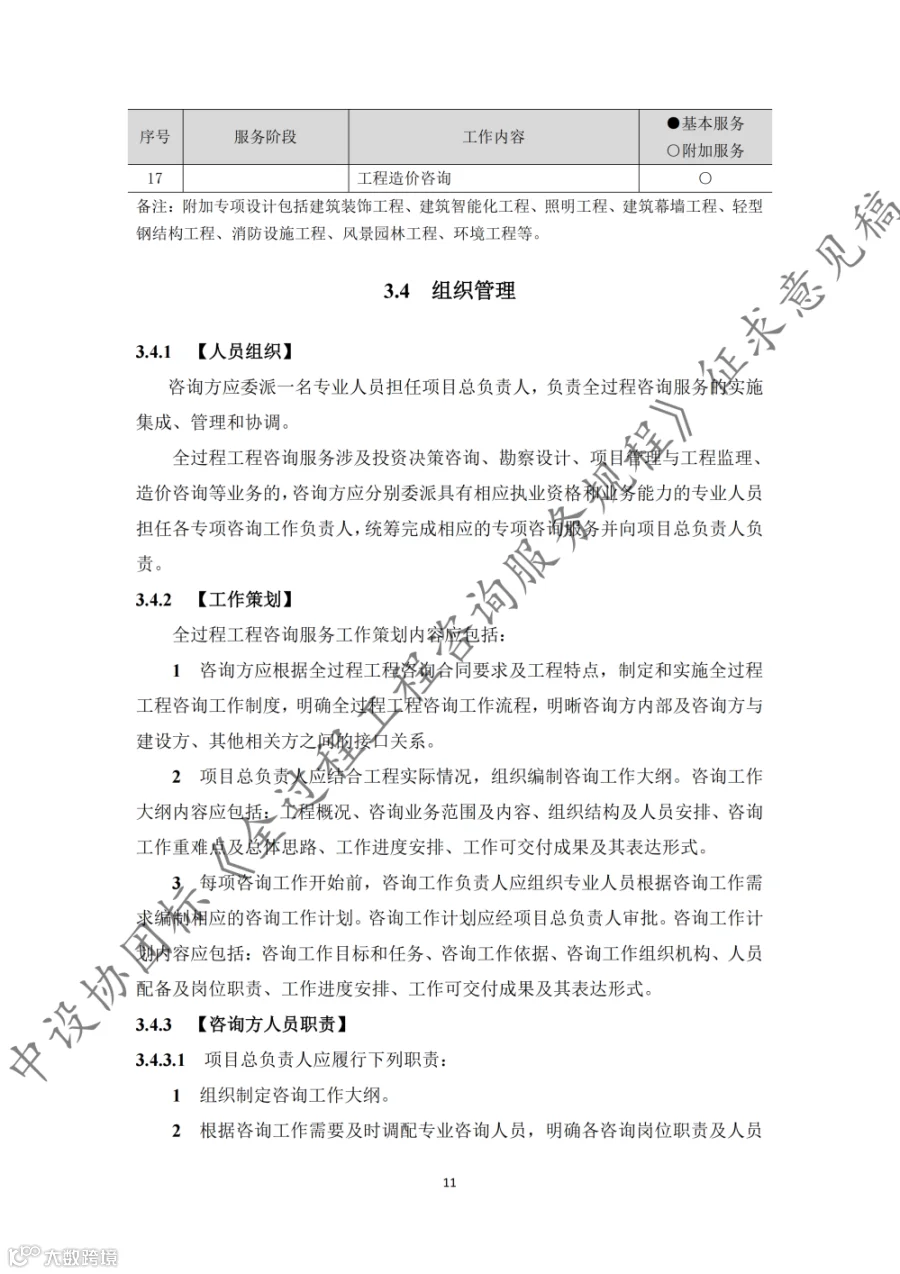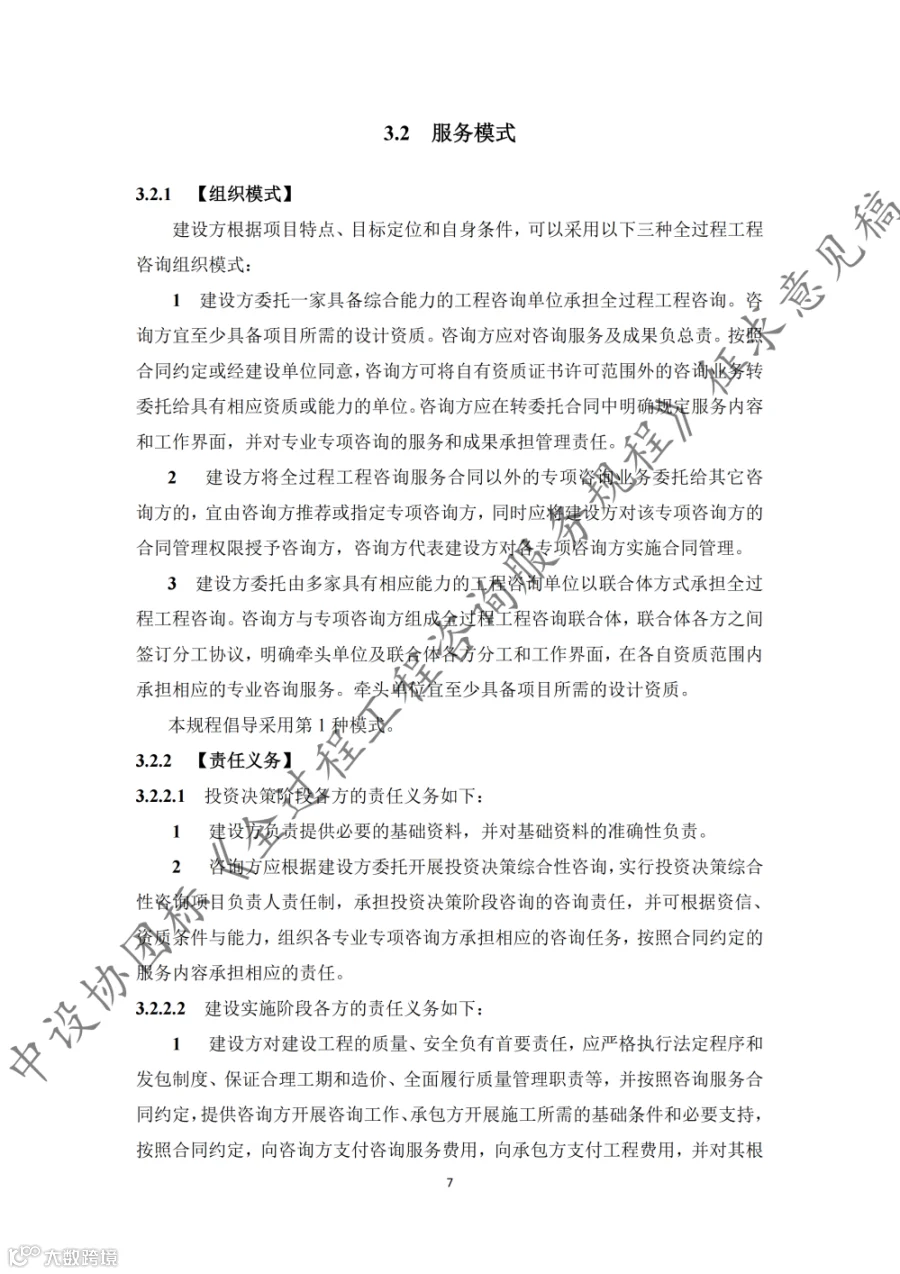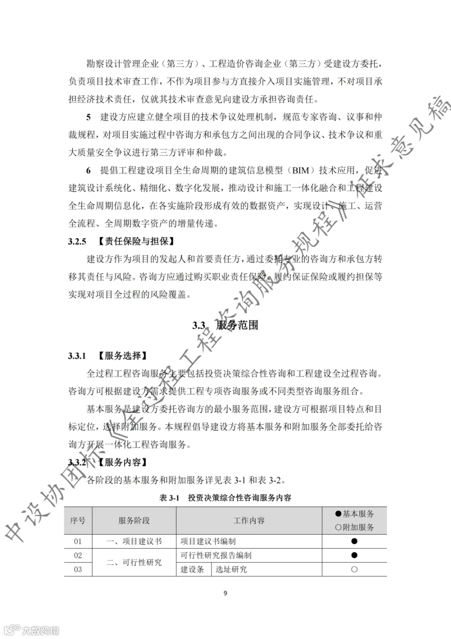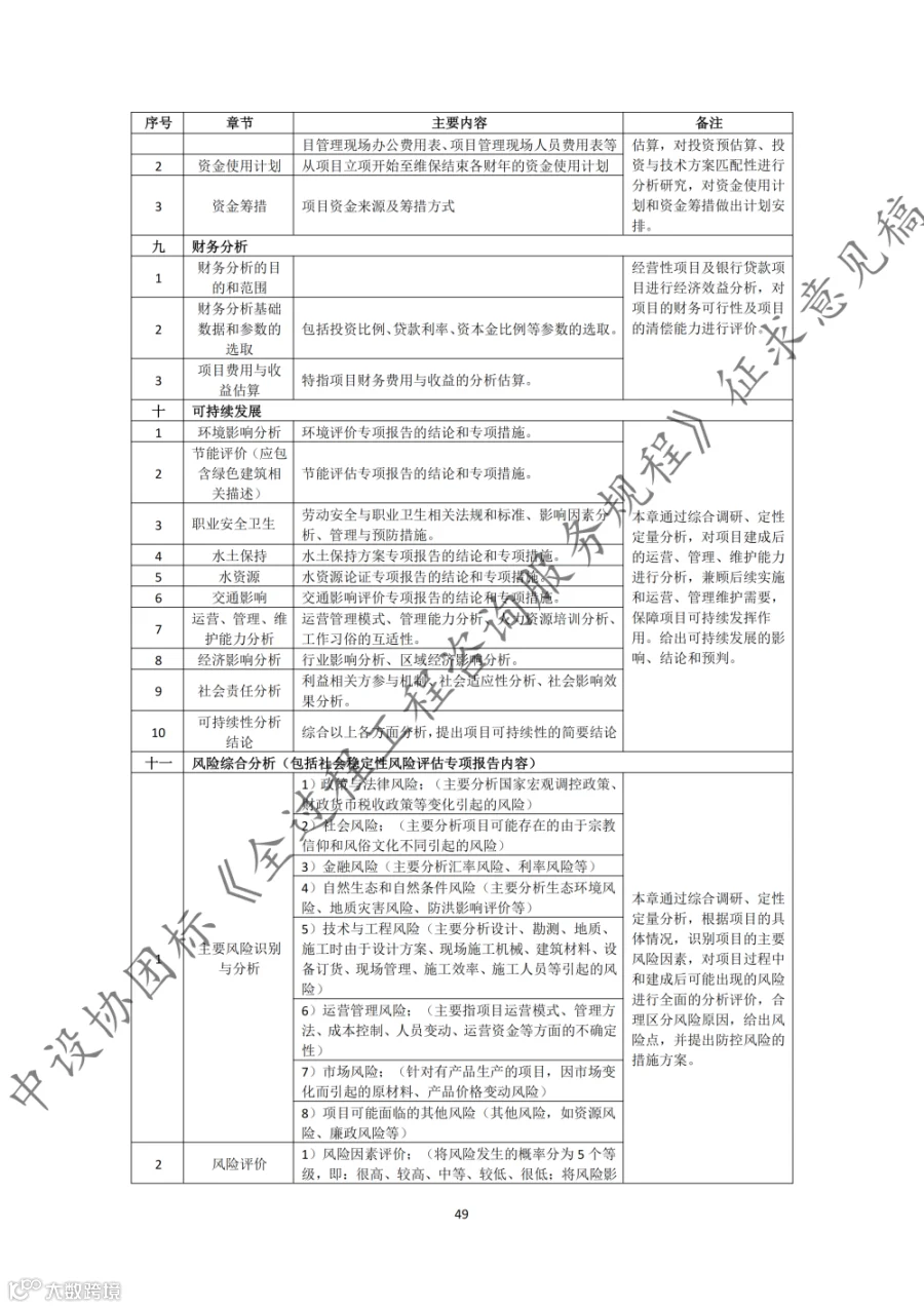 据悉,《规程》共9章内容,第1章至第3章分别为总则、术语和基本规定,第4章至第8章为全过程工程咨询的核心内容,第9章为第三方审查。《规程》适用于房屋建筑和市政基础设施建设项目的投资决策综合性咨询和设计-招标采购-建造模式(DBB)下的工程建设全过程工程咨询,其他模式下的全过程工程咨询服务也可参考实施。