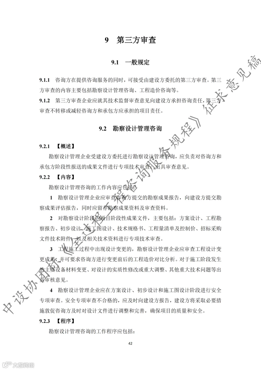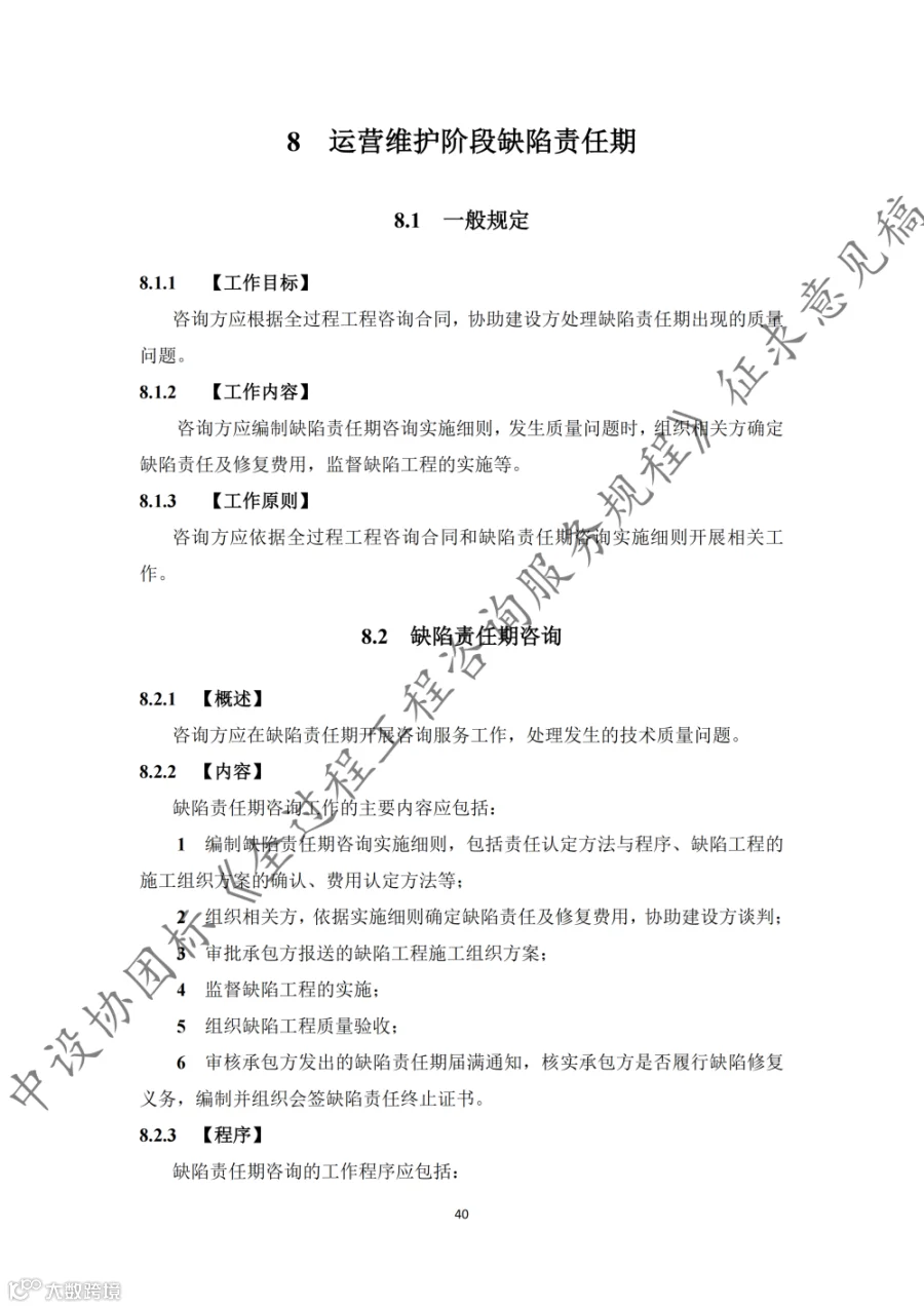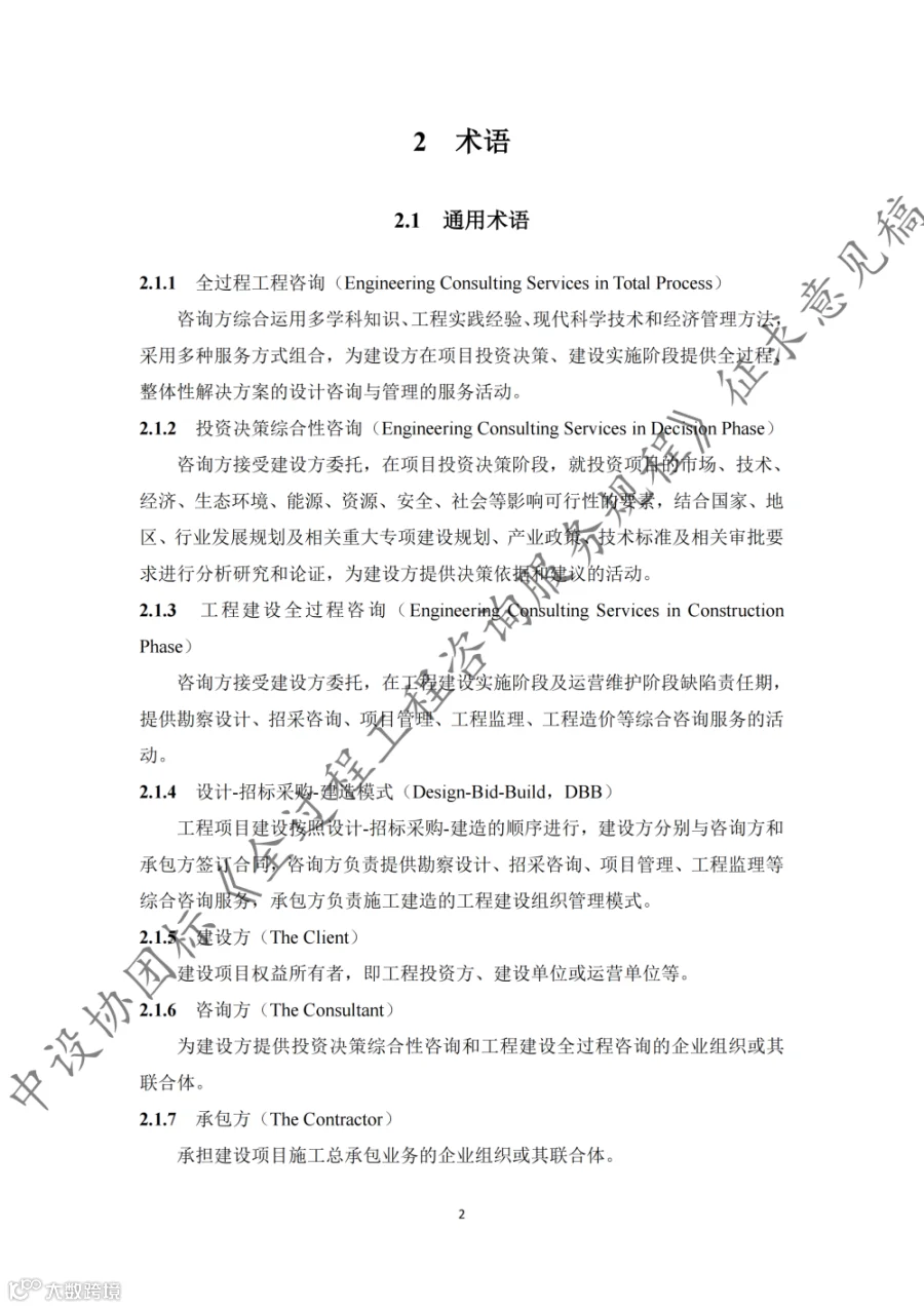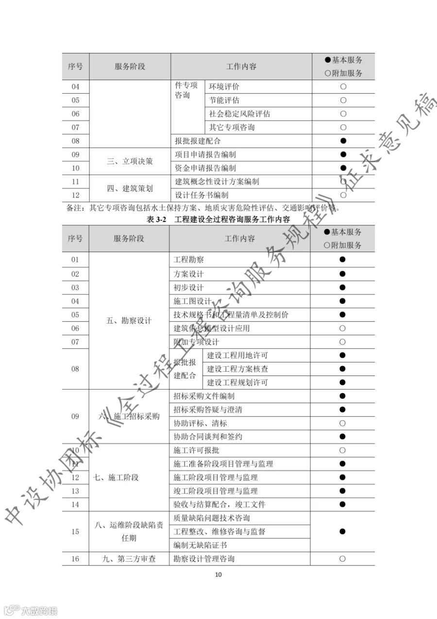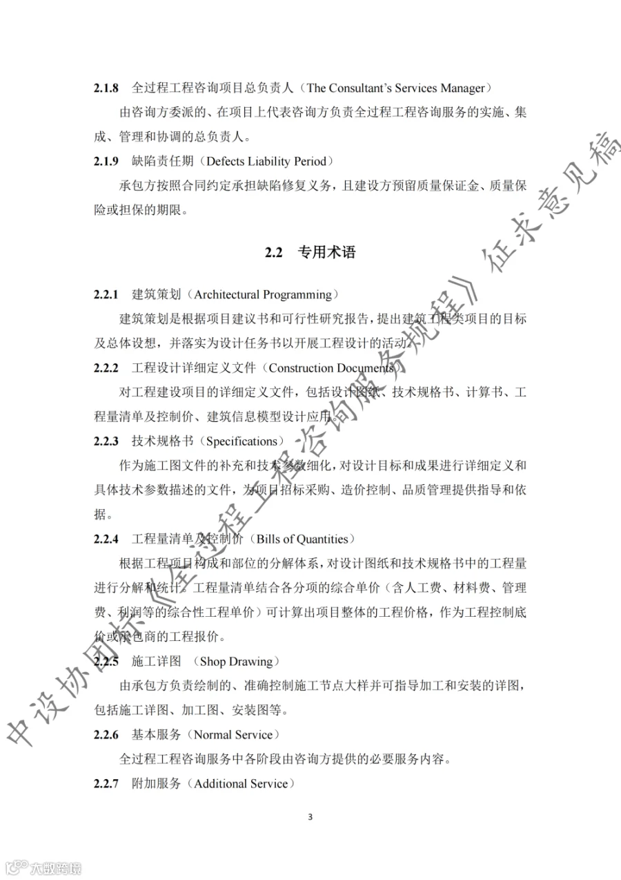 据悉,《规程》共9章内容,第1章至第3章分别为总则、术语和基本规定,第4章至第8章为全过程工程咨询的核心内容,第9章为第三方审查。《规程》适用于房屋建筑和市政基础设施建设项目的投资决策综合性咨询和设计-招标采购-建造模式(DBB)下的工程建设全过程工程咨询,其他模式下的全过程工程咨询服务也可参考实施。