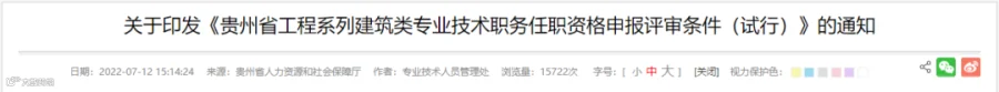 近日,贵州省人社厅和住建厅发布《贵州省工程系列建筑类专业技术职务任职资格申报评审条件(试行)》,明确:
