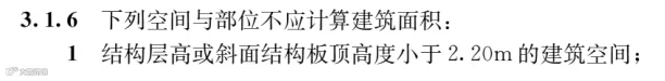 3.1.6第一款:结构层高小于2.20m的建筑空间,列为不应计算建筑面积的范围。