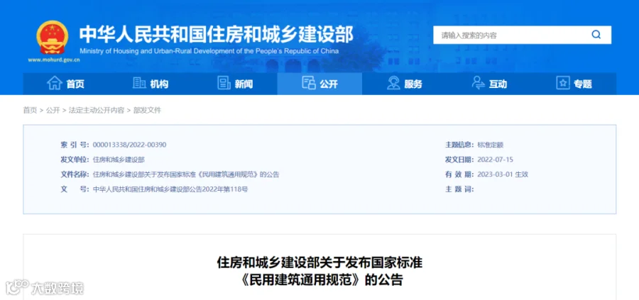 2022年8月25日,住建部批准《民用建筑通用规范》为国家标准,编号为GB 55031-2022,自2023年3月1日起实施。