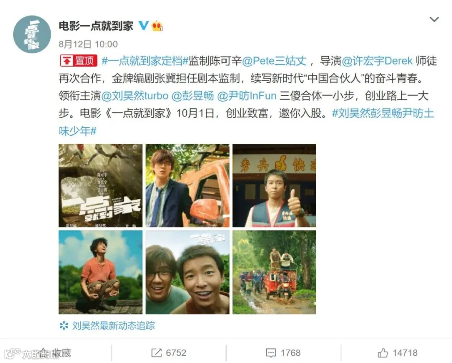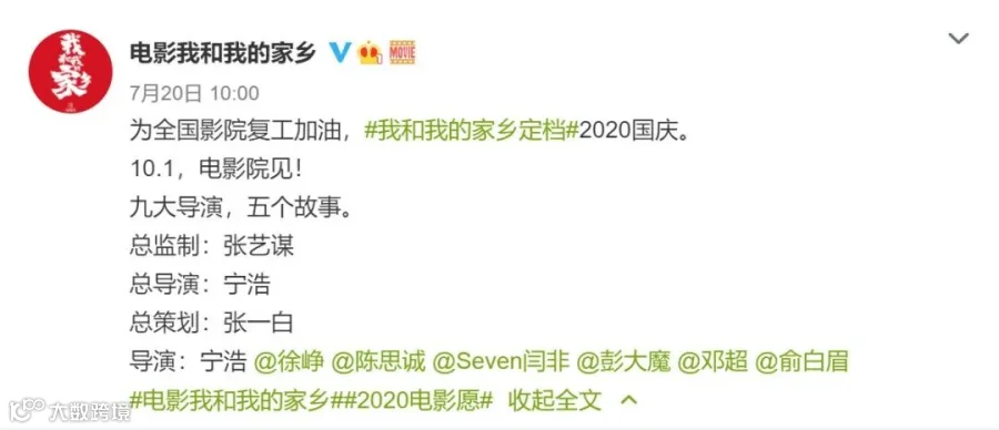 今年国庆档,除了《姜子牙》《急先锋》外,还有阵容豪华的《我和我的家乡》和“青春版中国合伙人”《一点就到家》等。