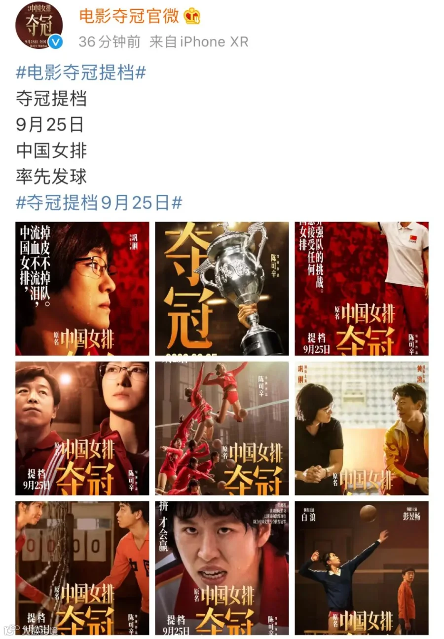 据@电影夺冠官微 9月13日消息