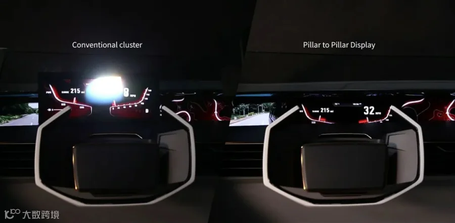 由于大屏幕显示器横跨驾驶座和副驾驶座,因此防止太阳光反射成为了安全出行的首要任务。其次,为了实现无缝显示和曲面显示的匠心技术,并将成本控制到能够在移动出行中搭载此产品,也成为了电装在产品开发中需要克服的另外一层障碍。