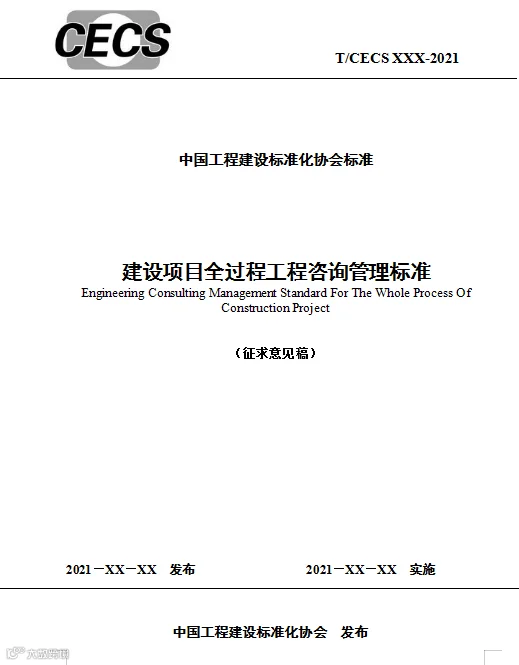 目前网上尚未有标准正式版(电子版)。只有《建设项目全过程工程咨询管理标准》(征求意见稿),分享给大家。